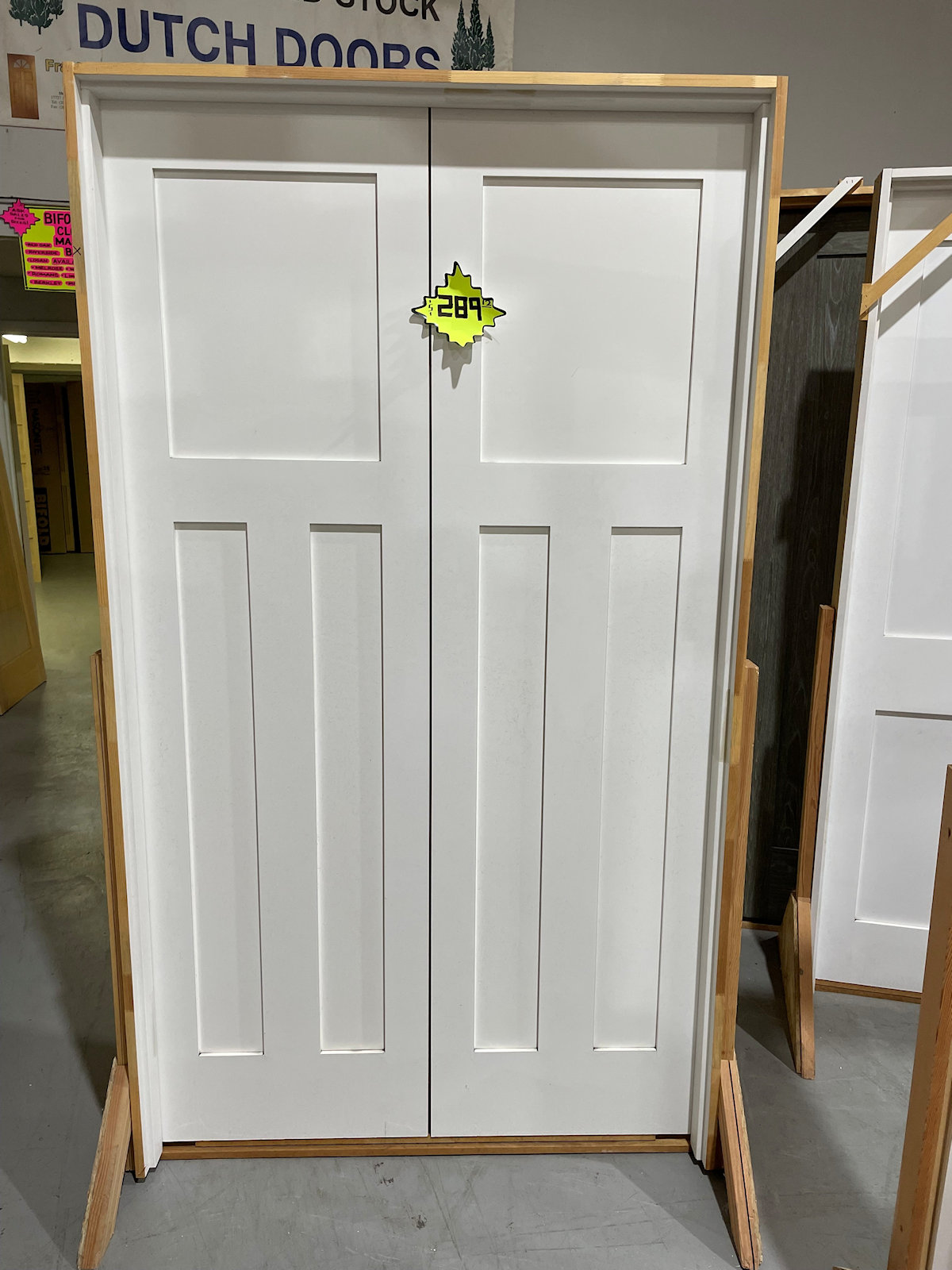Interior 3 Panel Primed Shaker Double Door. Fits RO of 46-1/2" x 80-1/2" with a 4-9/16" Wall. $289.12