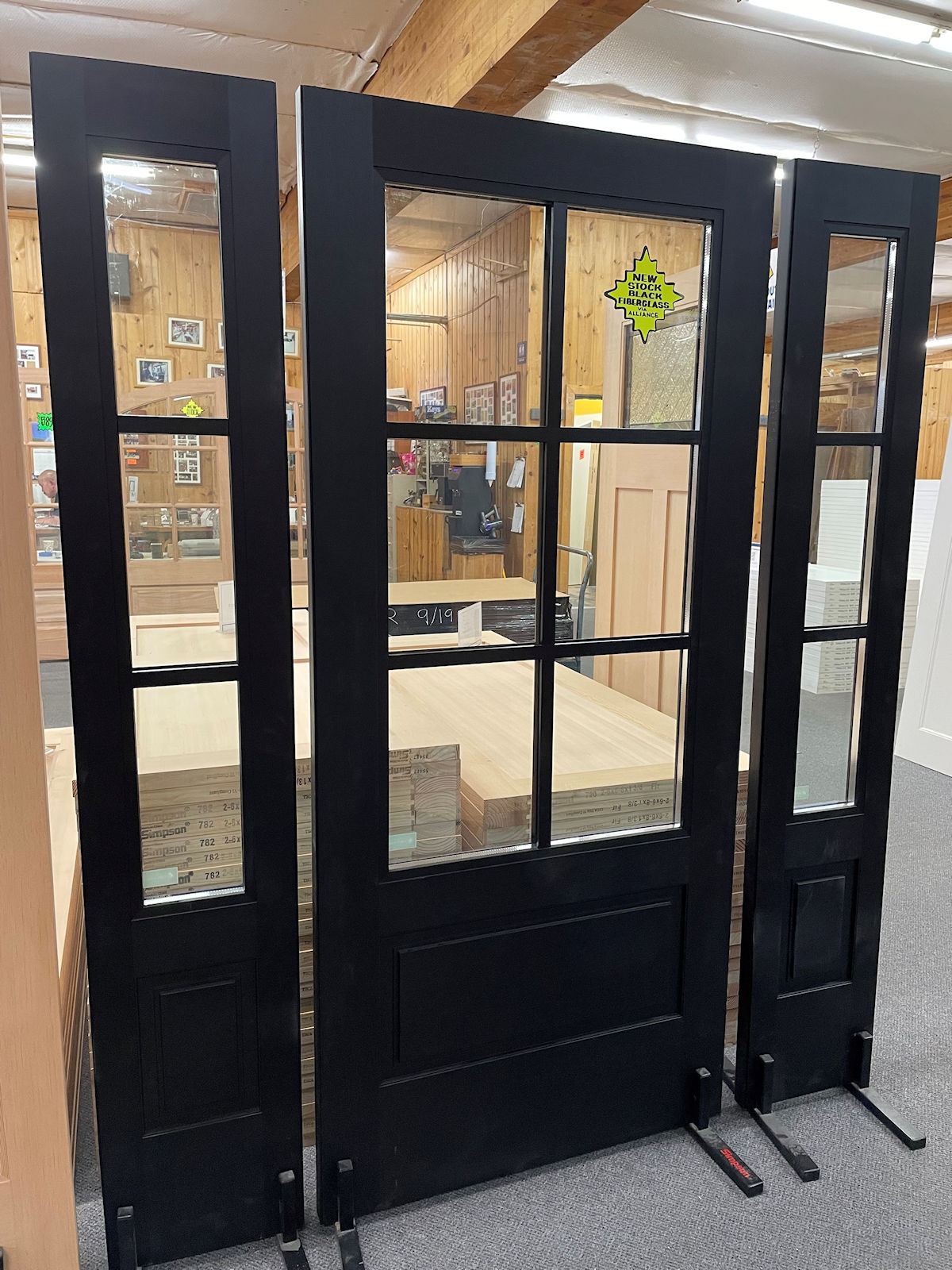 6 Lite 1 Raised Panel Black Fiberglass Doors & Matching 14" Sidelites. Call for Pre-hung Pricing.